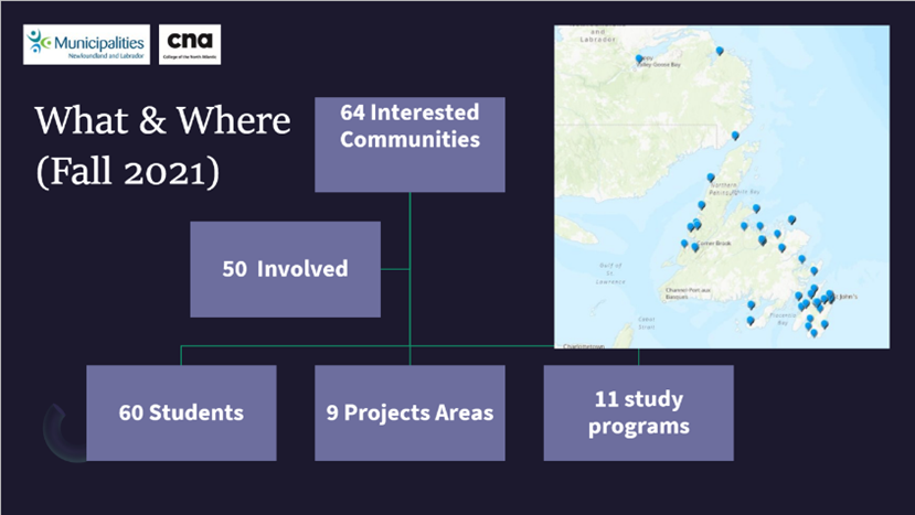 “The goal is to create win-win situations,” said Chris Adams, Work Integrated Learning Coordinator at MNL. “We want to give students in the province an opportunity to experience what it’s like to work with a municipal government. Give them opportunities to use what they’re learning in their programs to help municipalities in the way they need help.”